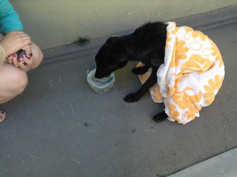 Собака была сильно истощена и сперва даже не могла пить.