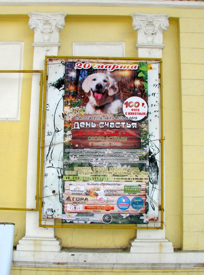 В воскресенье 20 марта в Центральном парке будет праздник посвященный всемирному Дню Счастья. В программе благотворительная фотосессия с собаками самых разных пород, обезьянкой, хорьками, кроликами и другими животными. Ярмарка мастеров рукоделия. В программе участвуют ростовые куклы.