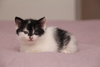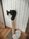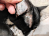 18 апреля в моем подъезде обнаружилась черно-белая молоденькая кошечка. Запыленная, когти грязные, уши чистые, при мытье обнаружена 1 толстая блоха. В правом ухе полустертое клеймо точками - .430?