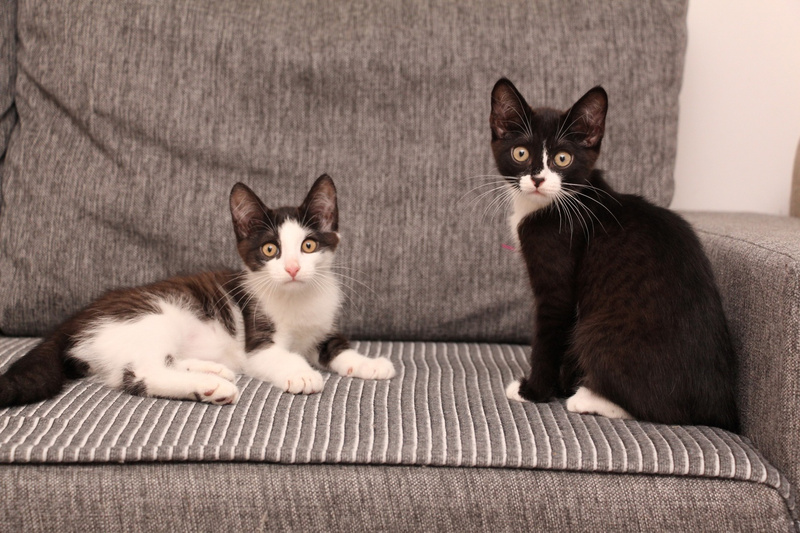 Приехали два черно-белых котенка Робин и Бобин, подросли и никак не хотят пристраиваться.