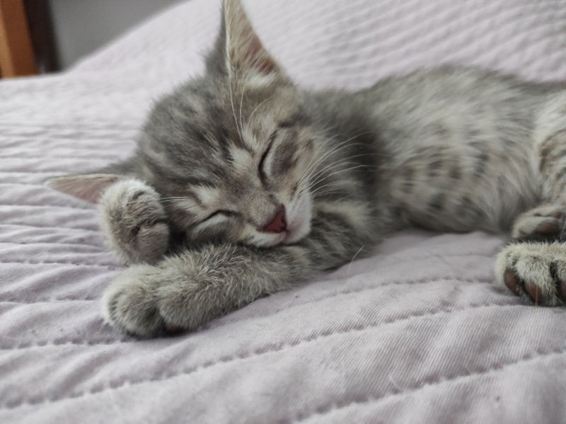 Мамуся стала уходить отдыхать от них, да и котята уже почти не сосут молочко, видимо наедаются кормом.