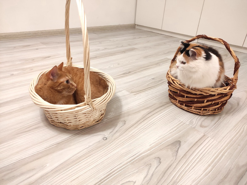 Кошки дома, отдыхают в отдельной комнате.