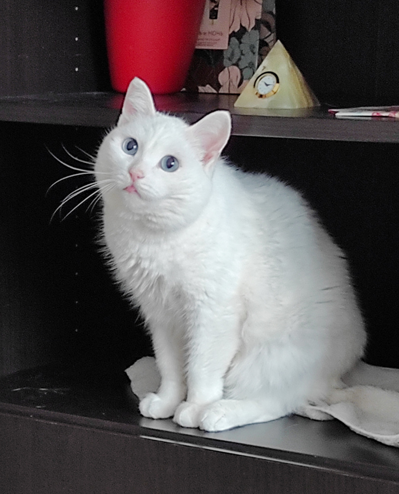 Доброго вечера всем. Беляна лечится, поэтому пиар и пристрой приостановили. Стеша активно пиарится, но был всего один отклик и тот плохой. Стеша отьелась, отогрелась и сразу - Командовать парадом буду Я! Машет на всех лапами, задирается, за что и получила по носу от Пыжа. Немного сегодня сфотографировала кошек, Беляна тпозировала хорошо, усы торчком, глаза широко открыла. Красивая кошка все таки она.