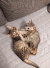 Котята очень ласковые, контактные, спят на руках, моей больной спине, встречают с работы, радуются вкусняшкам, игрушкам. Дети, есть дети.