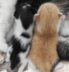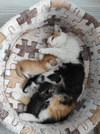 К нам неделю назад приезжала Алена, сделала качественные фотографии, Наташа активно пиарила малышей и результат - все поехали по домам. Муся перестала кормить их, так как сама мелкая, вес около 2 кг.