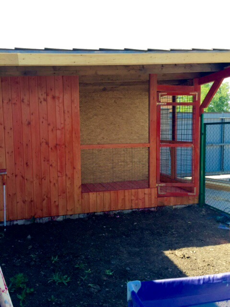 фундамент мы не заливали-выкладывали из бетонных блоков. В вольер проведено электричество-чтоб кормить не наощупь))) внутри летом лежал матрас,по осени и сейчас-сено. Заказывала с доставкой 10 тюков,хранится как раз на крыше теплого отсека. Все опробовано на себе