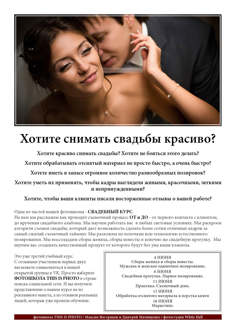 - особенности съемки на заказ (что необходимо учитывать при съемке рекламы, журнальной, модельной съемке)