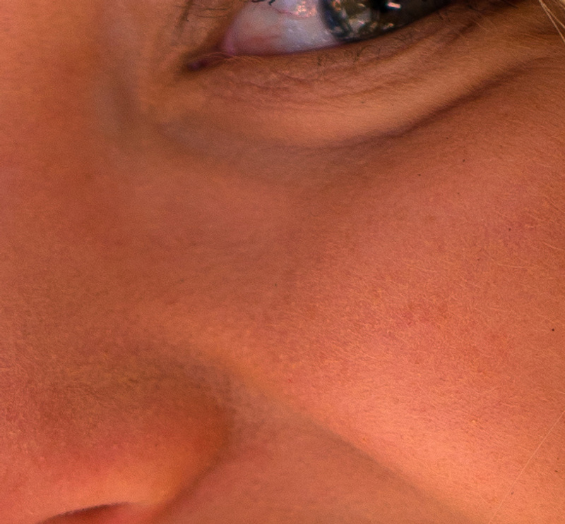 Куда дели кожу? Учитывая, что это лицевой портрет (второй снимок). Для пример как должна выглядеть кожа на 100%, вырезал из ростовой фотографии, т.е. деталей значительно меньше по сравнению с лицевой, но их больше чем с мыльницы-сони. (фото 3).