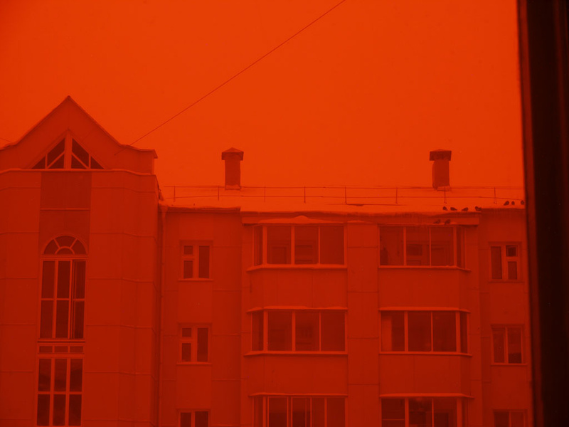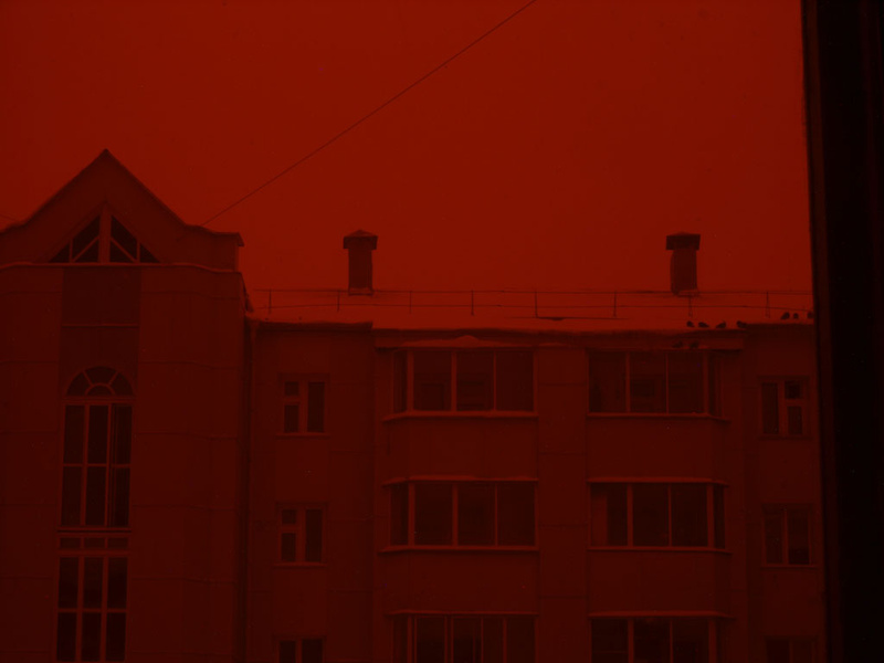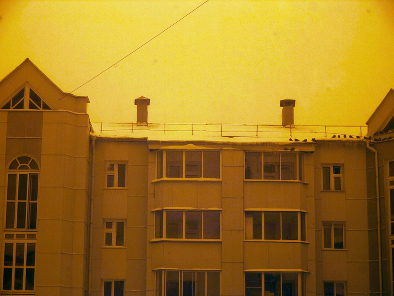 Снято в пасмурную снежную погоду через окно.