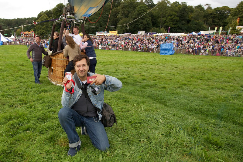 Подробный отчет напишу, когда вернусь в Россию. Мероприятие было очень массовым, народу- тьма тьмущая. Я опоздал с запросом на аккредитацию и мне отказали в ней. По периметру охраняемой зоны было немало фотографов с серьезной техникой, штативами. Внутрь пускали с особыми синими VIP Бейджами. Но как и на всех массовых мероприятиях, внутрь проходили некоторые тнз "блатные" персоны. Я прошел уверенно, предъявив свой бейдж WPA. Туда- сюда ходил 2 раза. Подходил к корзинам воздушных шаров вплотную, кажется при желании легко мог уговорить взять меня в полет, как представителя ПРЕССЫ. Бесплатно пил пиво и угощался в VIP- зоне.