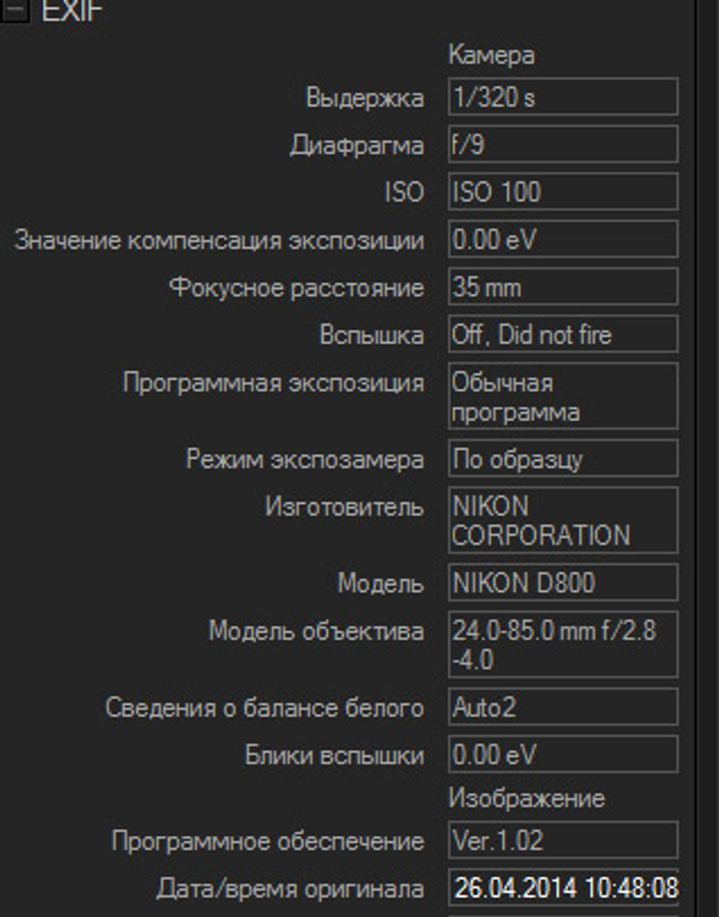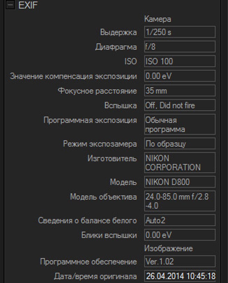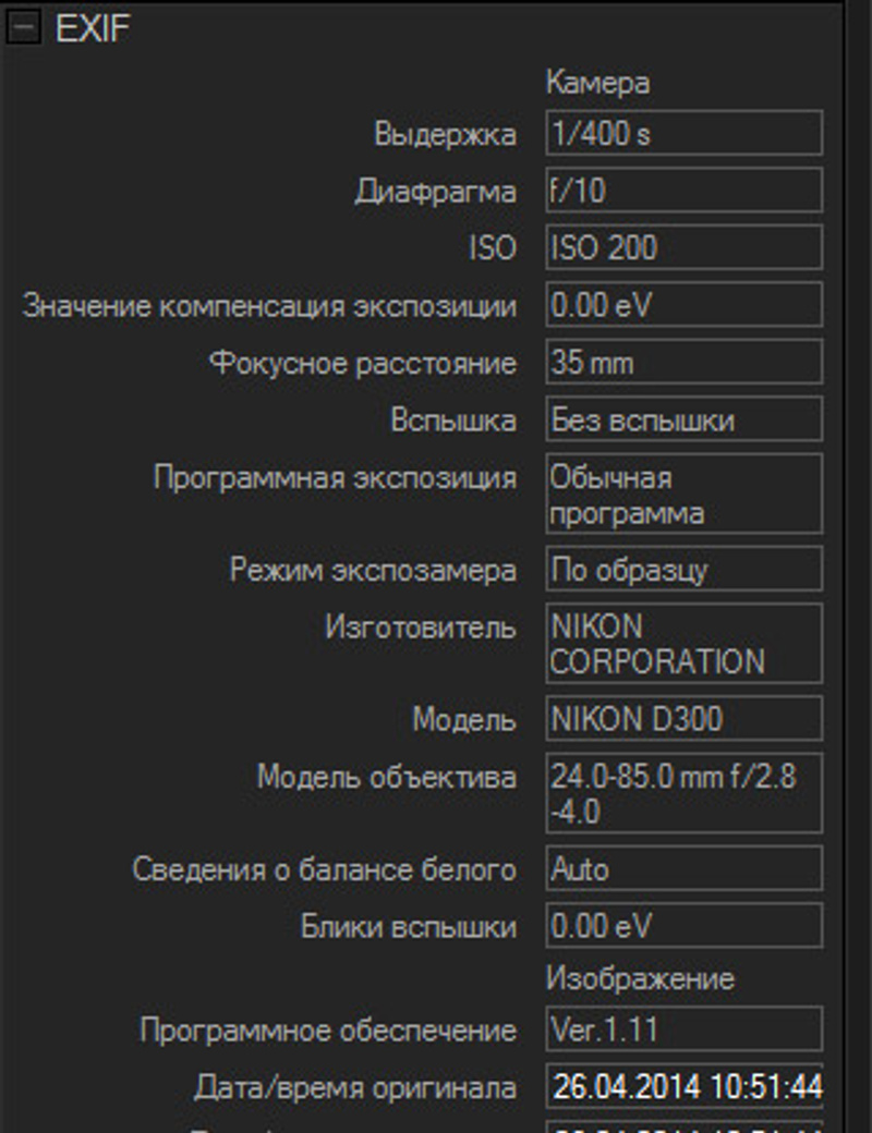 Данные EXIF на все три снимка.