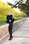 Ну, понятно, что освещение осталось тем же, разве только модель отошла чуть подальше, поэтому ошибки заметны меньше. Но все та же вспышка в лоб. Ваша модель достаточно молодая девушка. Посмотрите на ее фигуру. Либо она ждет ребенка и довольно скоро, либо вы неправильно ее сняли. Вы, как фотограф, должны выбирать ракурс таким образом, чтобы недостатки фигуры не были заметны. Вы же их наоборот подчеркнули.