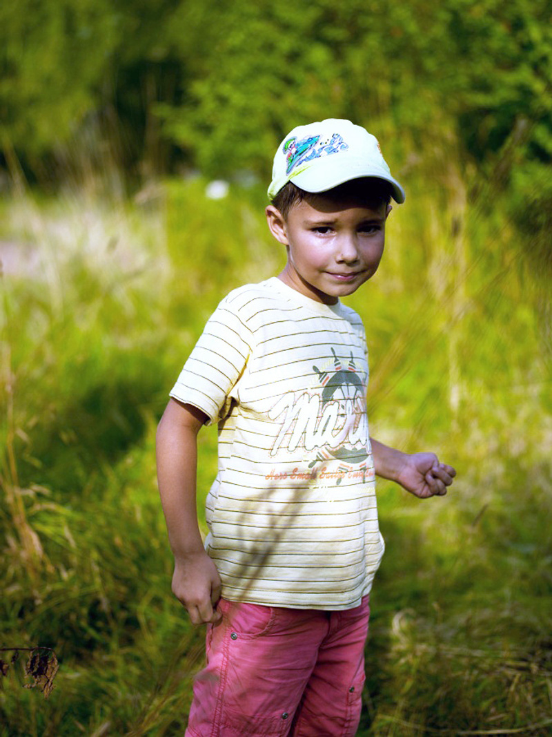 Вокруг полно зелени, вся она, включая траву, гораздо выше пацана, зеленые рефлексы обязаны быть. Поэтому и выбрал, что они там есть.Как-то вот не совсем согласен с вами. Ну, в плане такого выбора. Мы забываем, что наш мозг - тоже компьютер. Когда мы смотрим на снег, то мы видим именно белый цвет. Но если мы зададим себе вопрос, а какой реальный цвет имеет белый снег, то наш мозг тут же уберет корректирующую поправку и мы увидим голубой цвет. То же самое происходит и с рефлексами другой природы, в том числе и теми, которые есть на мальчике. Пока мы не задаемся вопросом, что же мы видим, наш мозг делает корректировку цвета. Поэтому, мое ИМХО, нужно сохранять те цвета, которые видит наш мозг с корректировкой, если только фотограф не ставит целью исказить это восприятие. Такая принципиальность в сохранении "истинного цвета" не всегда уместна.