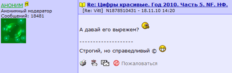 Ответ на сообщение Re: Цифры красивые. Год 2010. Часть 5. NF. НФ. пользователя formalist