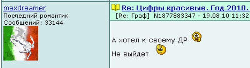 Ответ на сообщение Re: Цифры красивые. Год 2010. Часть 5. NF. НФ. пользователя maxdreamer