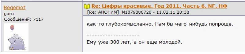 Ответ на сообщение Re: Цифры красивые. Год 2011. Часть 6. NF. НФ пользователя Begemot