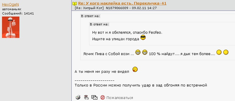 Ответ на сообщение Цифры красивые. Год 2011. Часть 6. NF. НФ пользователя Автоинформатор