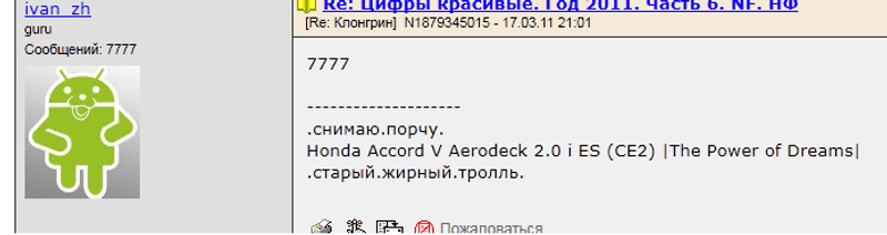 Ответ на сообщение Цифры красивые. Год 2011. Часть 6. NF. НФ пользователя Автоинформатор