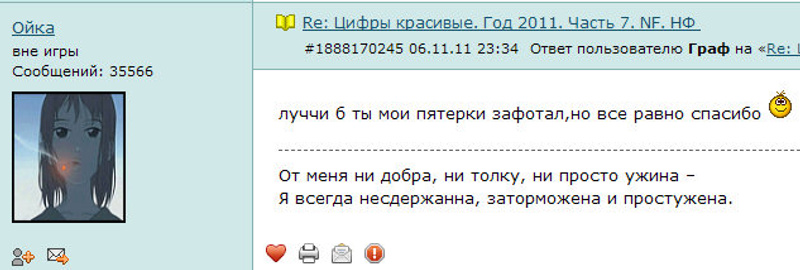 Ответ на сообщение Re: Цифры красивые. Год 2011. Часть 7. NF. НФ пользователя Ойка