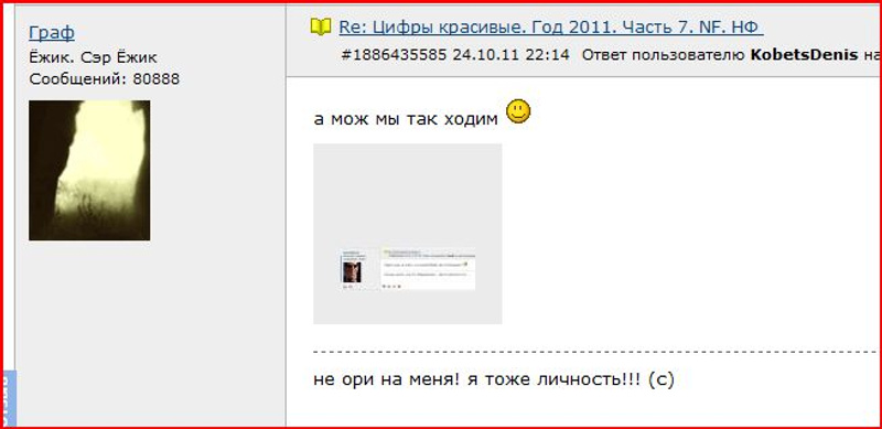 Ответ на сообщение Re: Цифры красивые. Год 2011. Часть 7. NF. НФ пользователя Злобный_Карлик