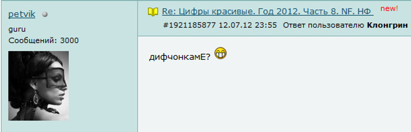Ответ на сообщение Re: Цифры красивые. Год 2012. Часть 8. NF. НФ пользователя petvik
