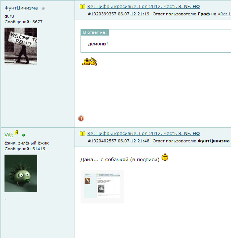 Ответ на сообщение Re: Цифры красивые. Год 2012. Часть 8. NF. НФ пользователя ФунтЦинизма