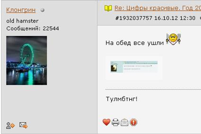 Ответ на сообщение Re: Цифры красивые. Год 2012. Часть 8. NF. НФ пользователя Клонгрин