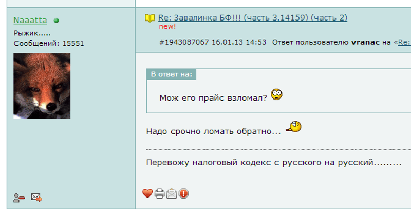 Ответ на сообщение Re: Цифры так себе, 2013 год. сплошной флуд пользователя Mr.Ash
