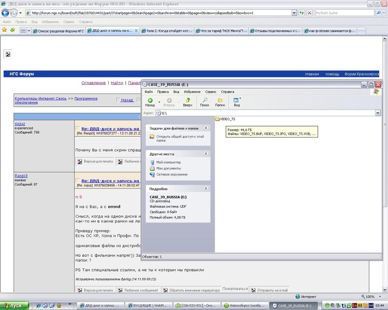 Ответ на сообщение Re: ДВД-диск и запись на нем пользователя sojuz