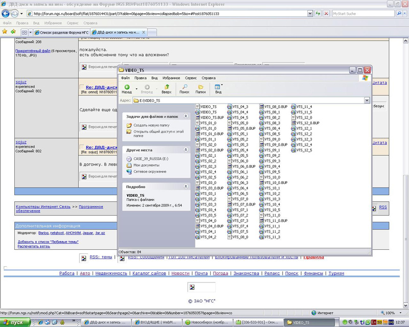 Ответ на сообщение ДВД-диск и запись на нем пользователя omnd