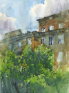 Будет меньше теории и больше акварели. Сюжет - красивые коттеджи возле ботсада.