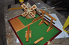 1 - Строиться башня, затем участники просто разбирают ее по отдельным костяшка-блокам. Костяшки складываются отдельно. При этом верхние костяшки трогать нельзя. То кто завалил башню проиграл. А у кого больше вытянутых костяшек, то выиграл.