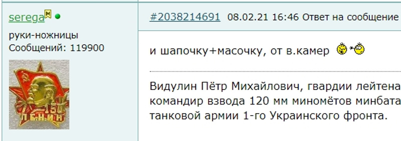 выражаю благодарность, с занесениемВидулин Пётр Михайлович, гвардии лейтенант