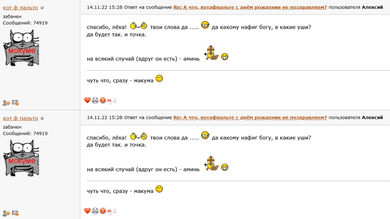 Ответ на сообщение Re: А что, котафпальте с днём рождения не поздравляем? пользователя Алексий