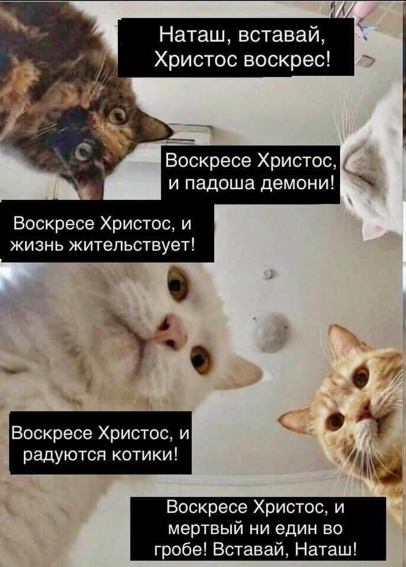 Ожидала проснуться одна, а тут котики наехали?Не, это ожидание мужчины. Ожидал увидеть девушку, а увидел котов.