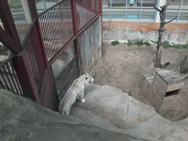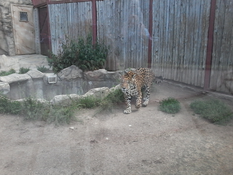 а тигры есть?Ага, есть. Кошачьих немного - рысей несколько(показывать не буду, у них клетки так себе), сервал (за стеклом), пара львов, ягуар (очень похожий на леопарда), тигр белый.