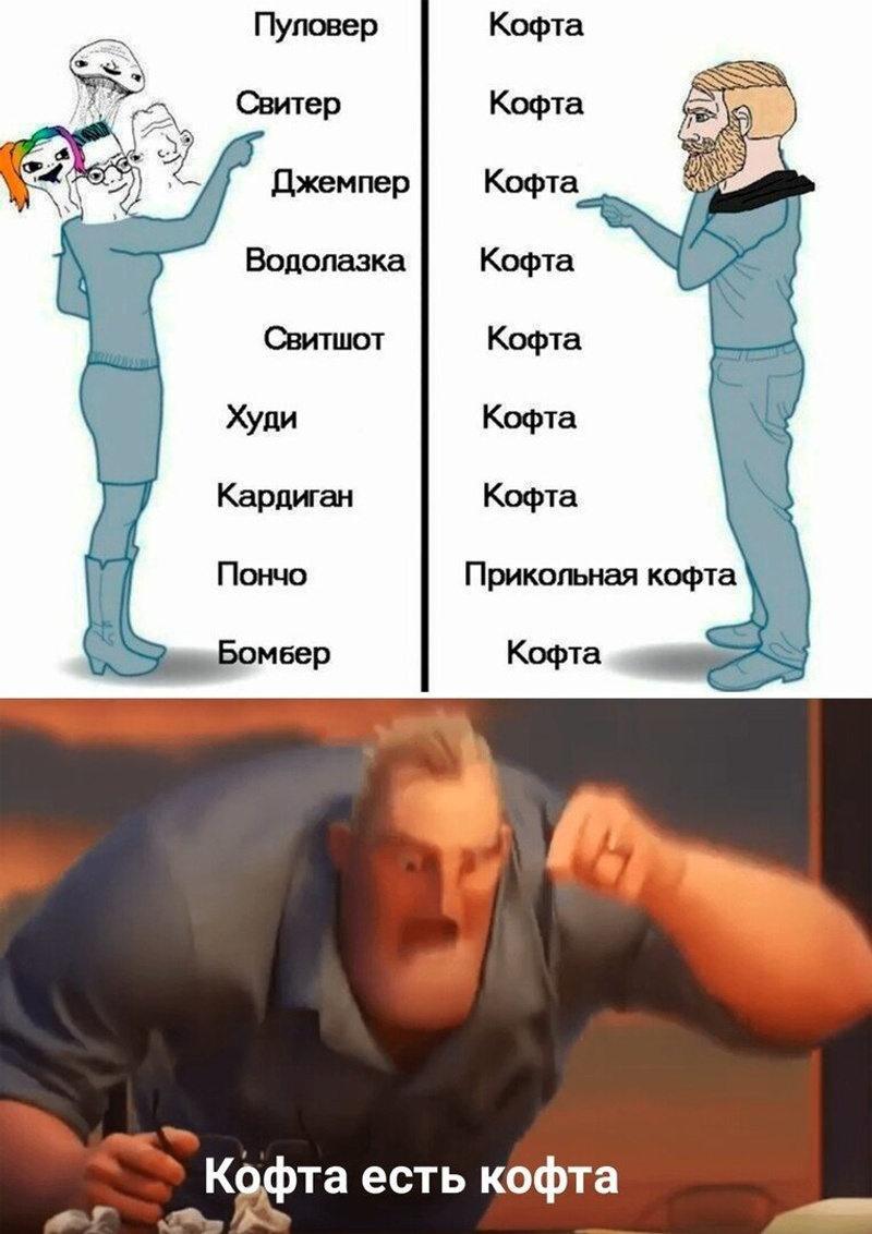 Вот это желание назвать отдельным словом каждое изменение прямо пугает. Что в одежде, что в обуви, что в еде.