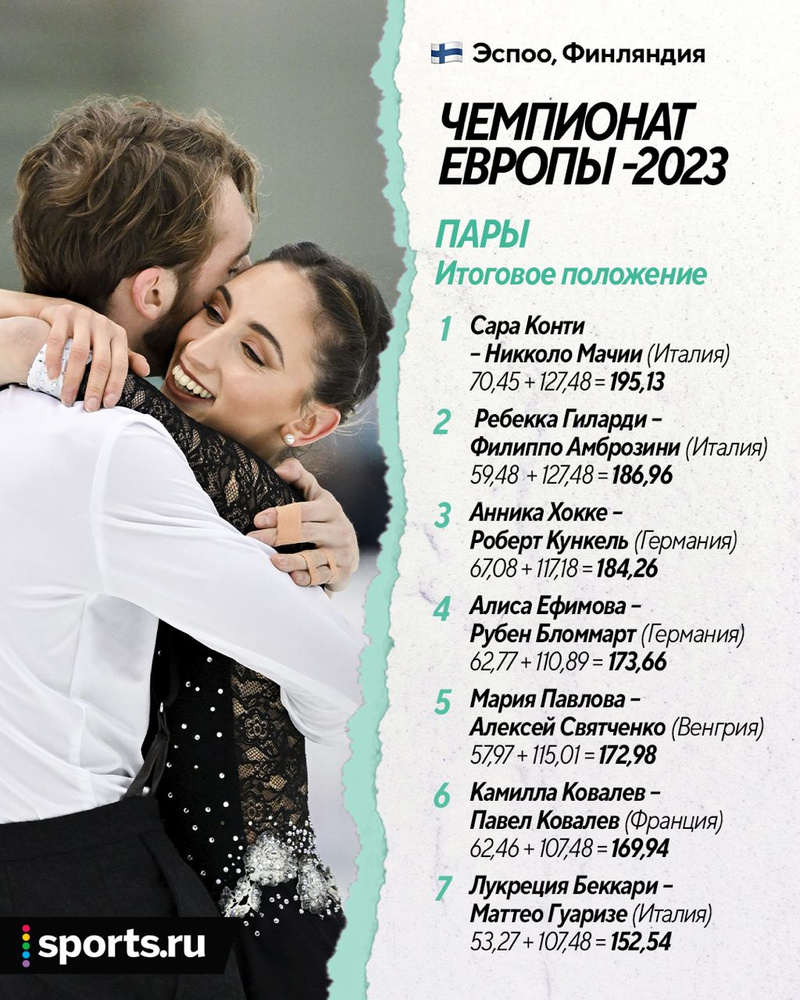 1. Сара Конти и Никколо Мачии (Италия) – 195,13