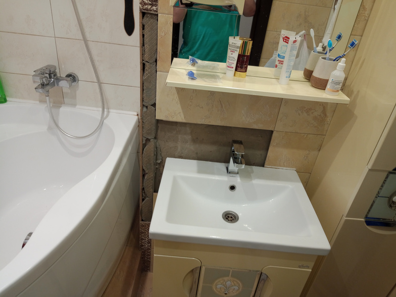 Плитка под ванной. За перегородкой.