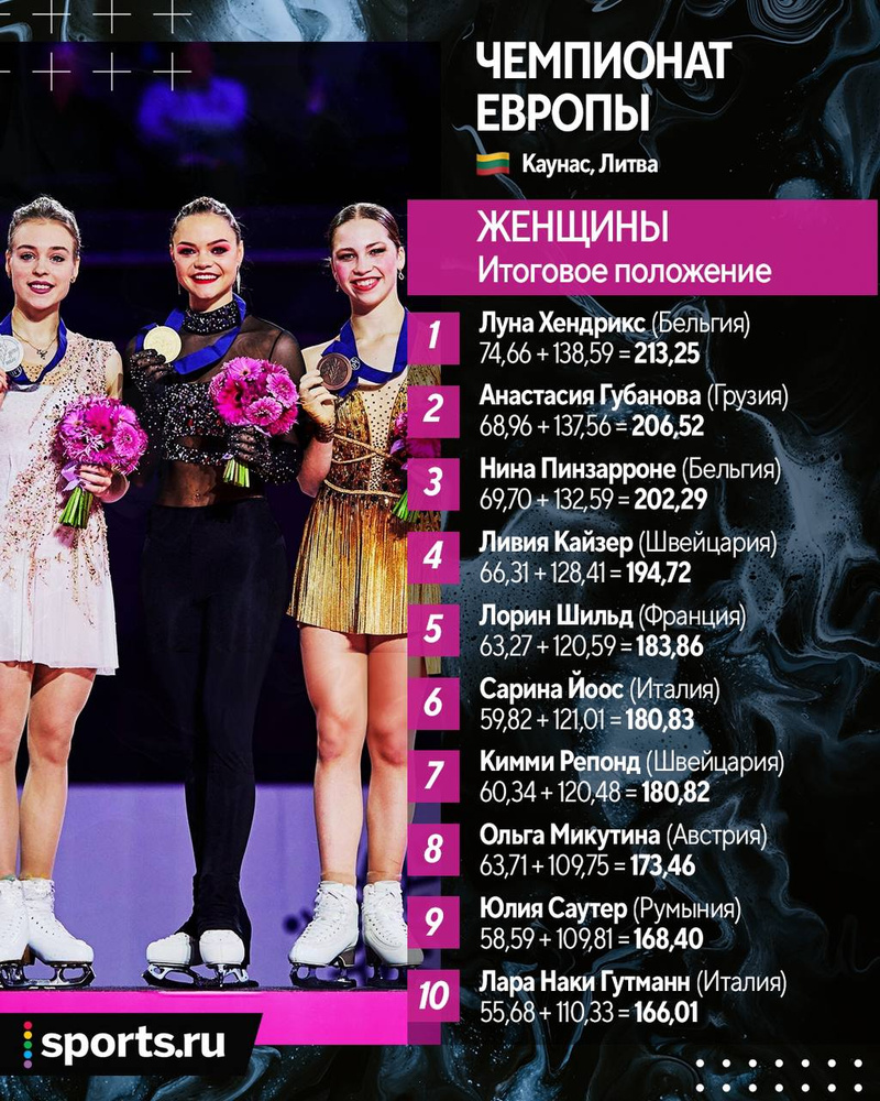 Луна Хендрик (Бельгия) впервые стала чемпионкой Европы. Анастасия Губанова (Грузия) с серебром, бельгийка Нина Пинзаронне - бронза.