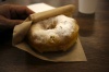 Что важно, пышки делают под заказ, так что когда их посыпают сахарной пудрой, пудра эта частично плавится сливаясь с поверхностью пышки.