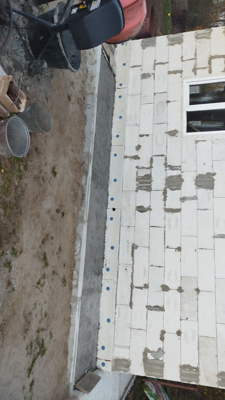 Армировал каждый третий ряд. всё как положено? )обижаешь! Заранее купил и металлическую и композитную, на пояс и стены, следил что бы все проложили