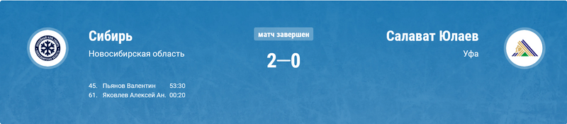 Матч завершён. Со счётом 7:0 победил Салават Юлаев