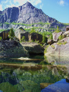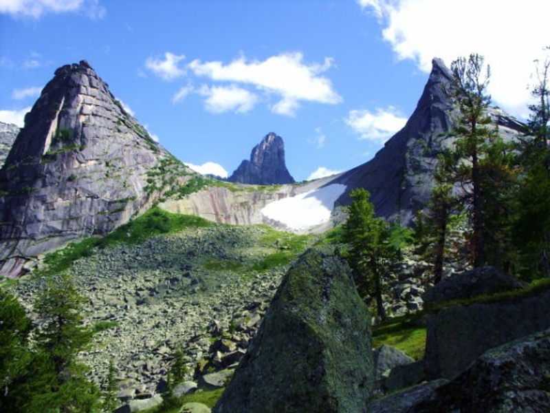 Западный Саян особенно славен удивительным уголком - Ергаками. Это остроконечные пики высотой до 2263 метров, живописные долины, тысячи белопенных водопадов, кристально чистые озёра и настоящая сибирская тайга. Черники тут просто немеряно...