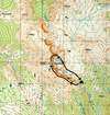 сколько ещё от этого места?Если у Вас проходимая машина с высокими колесами, то посуху, возможно, даже на последний холм перед горой сможете заехать, где находятся обломки радара, который тут был ранее. Самая высокая точка этого холма обозначена на карте (2060,8 м). Но дальше дороги нет. А если пойдет дождь, то, думаю, придется вызывать трактор чтобы вытащить Вас обратно.