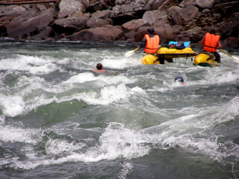 . Мой партнер по двояку в Пронесях-1 применил вакуумный хват пятой точкой - его выбило из упоров, одна рука держала весло, вторая воздух, и в таком виде он проехал весь порог, пока я держал нос к валу