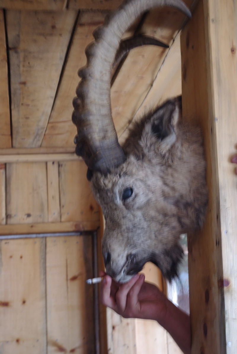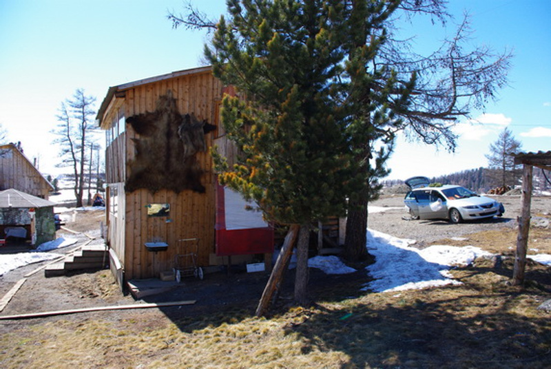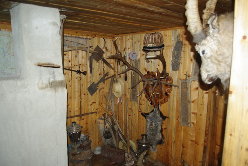 там ещё шкура медведя к потолку прибита. Блин, где-то ведь у меня фотографии были даже, надо найти, выложить-порадоваться