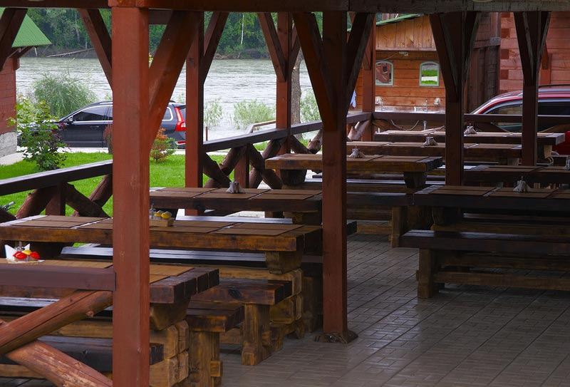 Потом нам пришлось объехать около десятка различных баз, расположенных на том же берегу, в итоге часа полтора пробегали под дождем в поисках приемлемого домика, который в итоге нашелся и оказался прямо на берегу Катуни (как и хотелось изначально). По деньгам вышло значительно дешевле чем в медвежьем угле и сервис был на голову выше - нам даже баньку истопили, дали доп. посуду и игрушки детям.