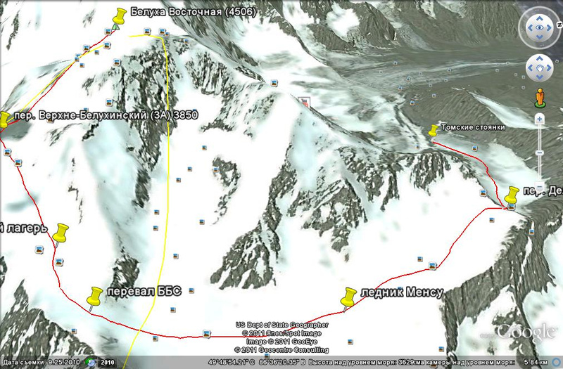 В ГуглЭарс я, к сожалению, не рисую. Да и зачем вам это? Если вы пойдёте на Белуху в обычное время июль-август, и обычным маршрутом (через пер. Делоне), то необходимости в ориентировании нет ни какой. Да и тропа по Менсу год от года немного, но меняется. То по центру идёт, то по краю, в зависимости от снеговой обстановки. В прошлом году, на пер. Делоне одновременно с нами лезло 3 группы и ещё две или три спускались вниз. Потом на Менсу на встречу нам шло человек 10-15. На саму Белуху одновременно с нами по ребру лезло тоже 3 группы. Там очень трудно заблудиться. На крайний случай достаточно карты и простого описания из какого-нибудь отчёта.