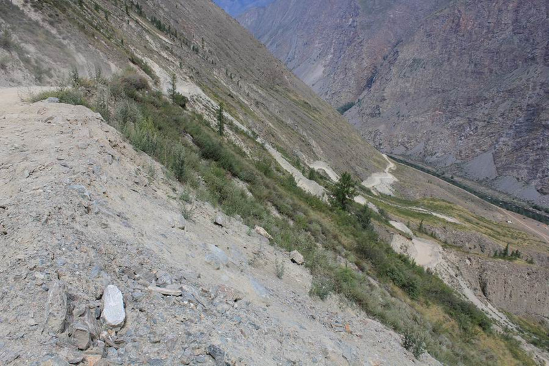 см выше фантазер.Вообще-то я этот "строящийся перевал" увидел в 2010 году, проехав перед этим с удивлением по новенькой дороге Балыктуюль - Кату-Ярык. А поскольку за год перед этим я там же проехал по еще старым тропам и не видел никакого "строящегося перевала", то сделал простой вывод - это выработка щебенки для отсыпки новой дороги. Когда я прошел к самому месту, то убедился в этом полностью, поскольку никаких видимых признаков какой-то дороги там нет, а уклон обрыва говорит о том, что вообще бессмысленно говорить о какой-то стройке.